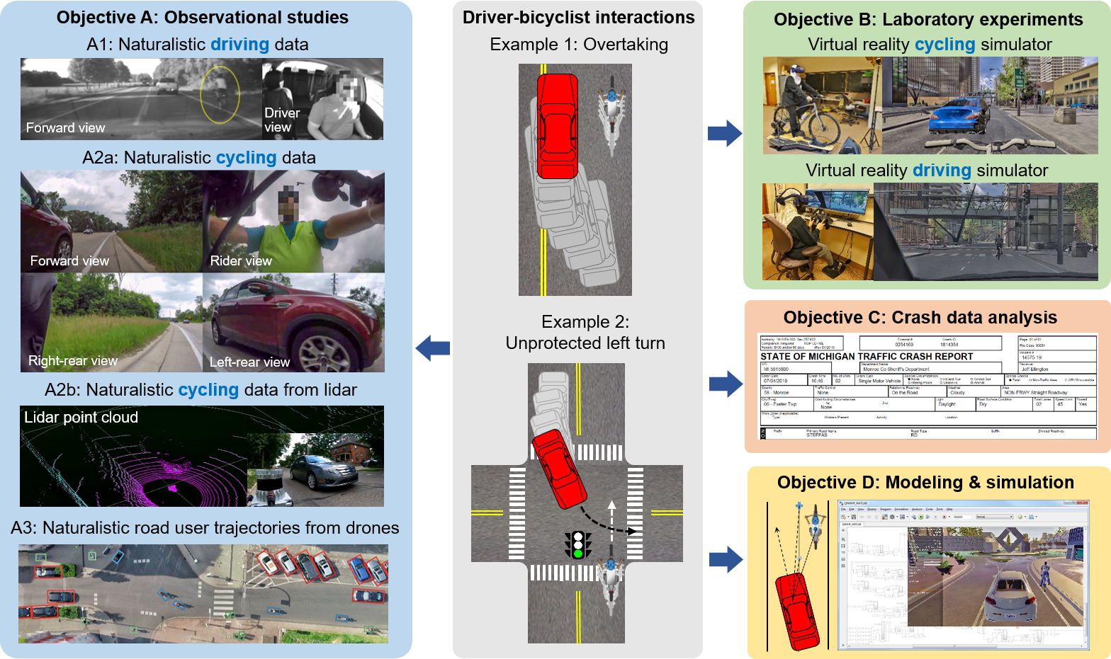 We use a variety of research methods including data analytics, applied statistics, causal inference, machine learning, human factors, and computational modeling and simulation.